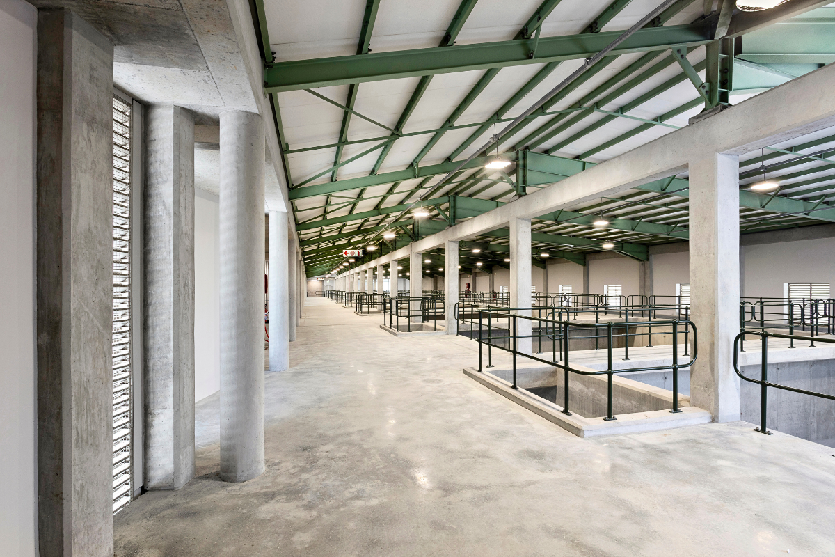 The architectural design responds to this process. Four long filtration halls are spread out over terraces on the site. The east and west facades are protected by deep brick fins. Narrow south-facing openings provide light and ventilation. The arrangement of solids and voids is tailored to the needs of maintenance, ventilation, light control and microbial containment.